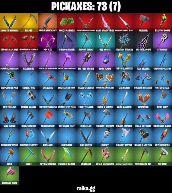 This wide range of cosmetics gives you both rare exclusives and versatile options, making this account perfect for everyday play or showing off in the lobby.