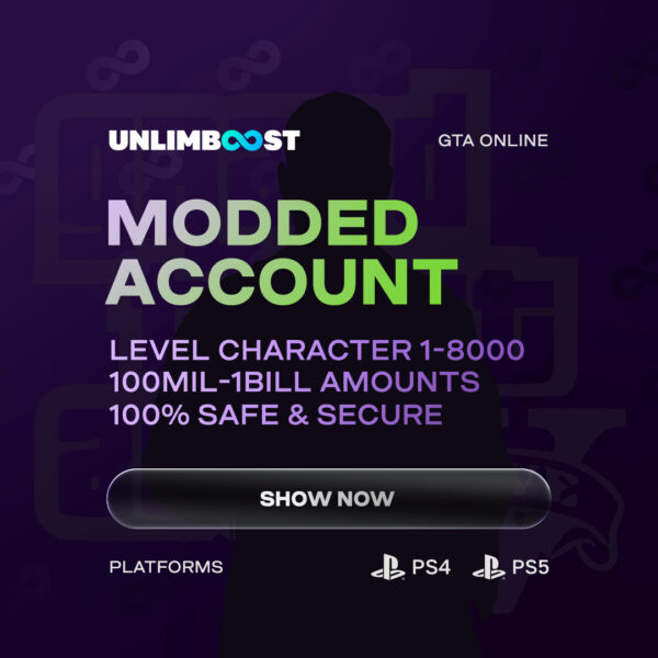 Tired of grinding your way through GTA Online on PS4? Want to skip the long hours of missions, races, and low-paying jobs? Step into the world of riches, high status, and full control with a GTA Online Modded Account PS4 from UnlimBoost. This is your shortcut to success, giving you everything you need to dominate Los Santos from the moment you log in. With UnlimBoost, you’re not just buying a modded account— you’re investing in a premium GTA experience. Whether you’re a casual player looking for some fun or a hardcore grinder who wants to skip the boring part, our modded account PS4 package is exactly what you need to unleash your full potential.What Is a Modded Account in GTA for PS4?